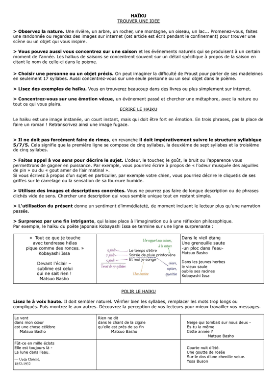 Le haïku (俳句) est une forme japonaise de poésie permettant de noter les émotions, le moment qui passe et qui émerveille ou qui étonne. Dans cet article on détaille le haïku, son origine et sa popularité puis on voit commencer composer soit même un poème.