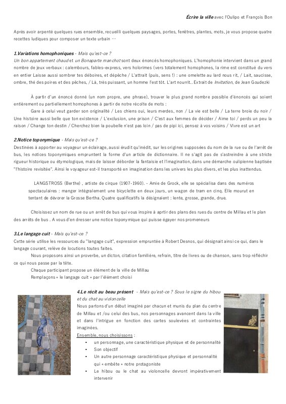 Vous trouverez ici les consignes et textes des ateliers