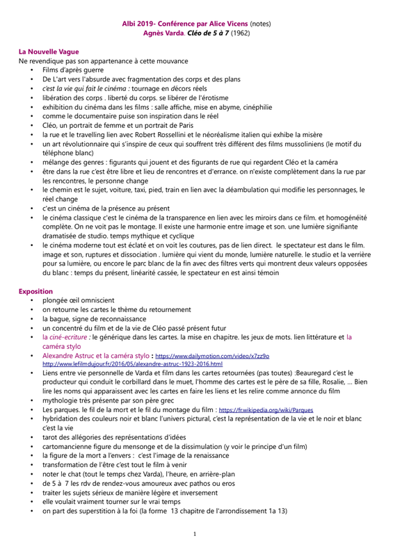 Agnès Varda accorde une place essentielle à l'écriture, elle invente sa propre écriture qu'elle nommera à partir des années 1980: «la cinécriture». Pour elle le cinéma a sa propre écriture qui englobe tout le processus créatif faisant un va- et- vient entre images, pensées,sensations. Dans l'avant-propos de l'édition du scénario de Cléo de 5 à 7, elle écrit: