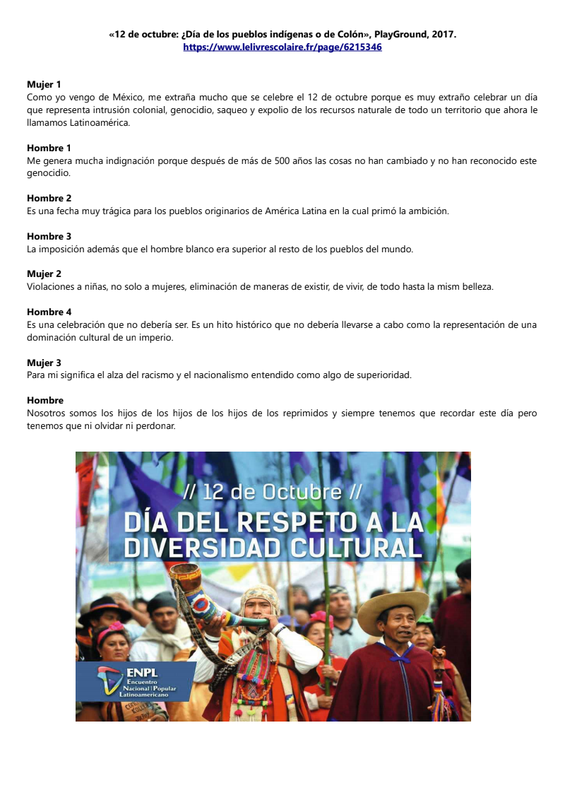 Directemente dans le manuel p 81 CO "Para mí el 12 de octubre es .."