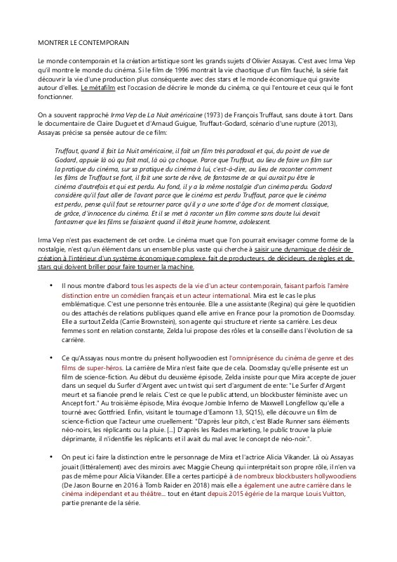 Jouant avec le « décalage » de Mira (horaire, personnel, culturel et professionnel), Olivier Assayas tire profit de son regard candide (une Roxane en Pays de Cocagne de « Libre cinéma ») pour interroger à neuf les conditions de création d’une fiction en 2022. Ce faisant, Irma Vep peut être autant étudié comme un documentaire en miroir sur son propre tournage que comme un état des lieux du cinéma et du désir, autant comme un carnet de création drolatique et distancié que comme un traité de « Conseils à un jeune cinéaste », autant comme une déclaration d’amour que comme un pamphlet, autant comme une auto-réflexion sur toute son œuvre par le cinéaste que comme une réactivation occulte de sa force et mémoire. Aussi le dialogue permanent et subtil que ménage Irma Vep la mini-série avec Irma Vep (le film de 1996) constitue-t-il le point de mire et d’incandescence de tout le dispositif. Par quoi un artiste est-il hanté lorsqu’il crée ? Et nous, qui visionnons son œuvre, quelles images-fantômes viennent nous assaillir ?