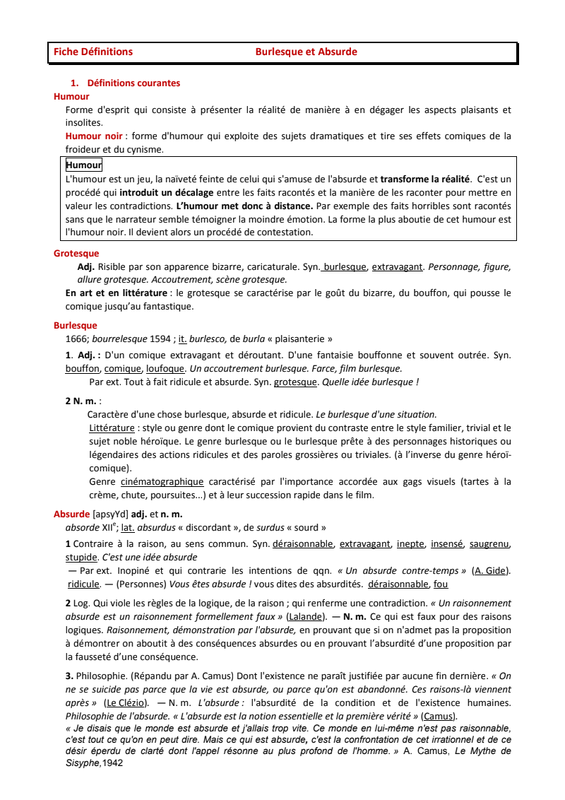 Definitions Burlesque Et Comique